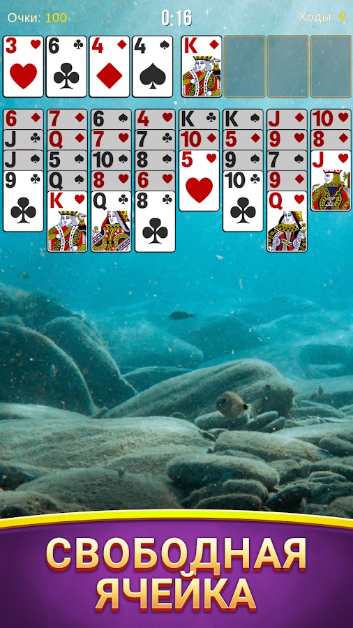 Разложите 28 вариантов пасьянсов в 10 захватывающих играх — Косынка, Паук, Свободная ячейка, Пирамида, Три пика, Скорпион, Восьмерка, Юкон, Гольф, Сорок разбойников и Память в одном бесплатном приложении.