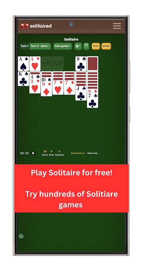 Попробуйте сотни карточных игр, включая Klondike Solitaire (Turn 1 и 3), Spider Solitaire, FreeCell и Pyramid Solitaire. Играйте в нашу игру дня, чтобы поддерживать остроту ума и отслеживать свою статистику и прогресс с течением времени.