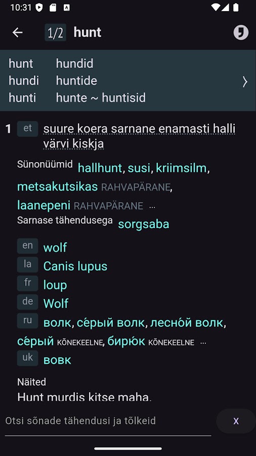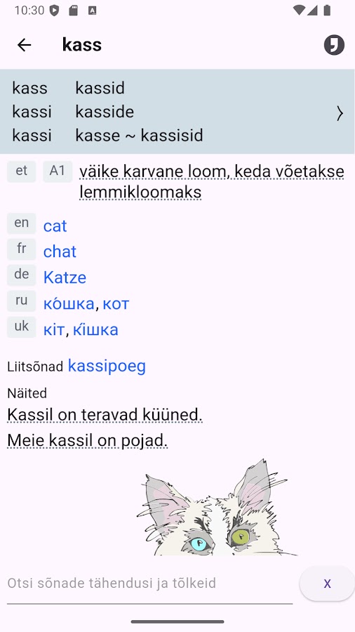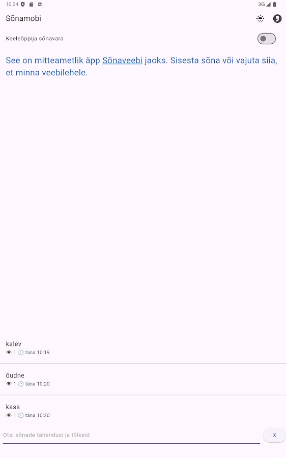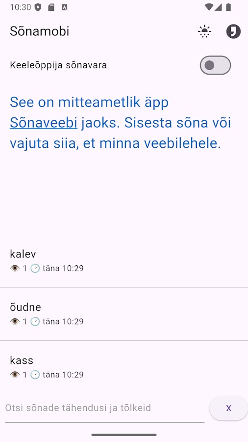 Это — мобильное приложение для работы с онлайн-словарём Sõnaveeb. Требует соединения с интернетом. С приложением проще искать слова на телефоне, оно заменит вам ту вечную вкладку в браузере.