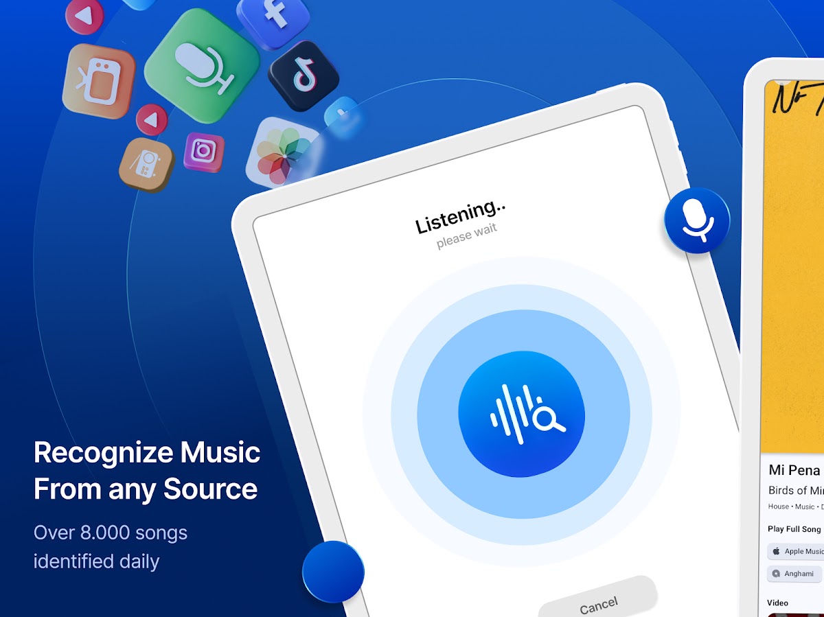 Да, вы можете легко найти музыку по звуку. Независимо от того, играет ли песня на радио, ТВ, в стриминговых приложениях или в видео, Song Finder распознает песню всего за несколько секунд прослушивания.