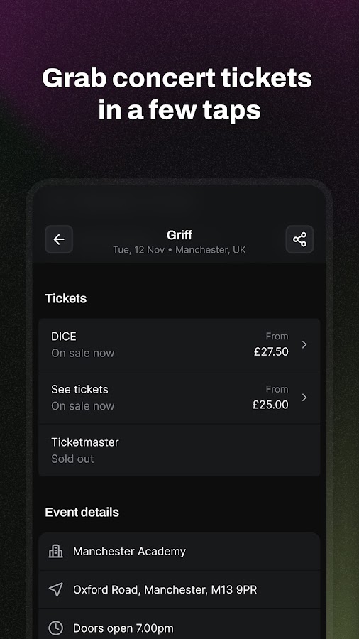 • Откройте для себя новые группы с концерта рекомендации, основанные на ваших музыкальных вкусов.