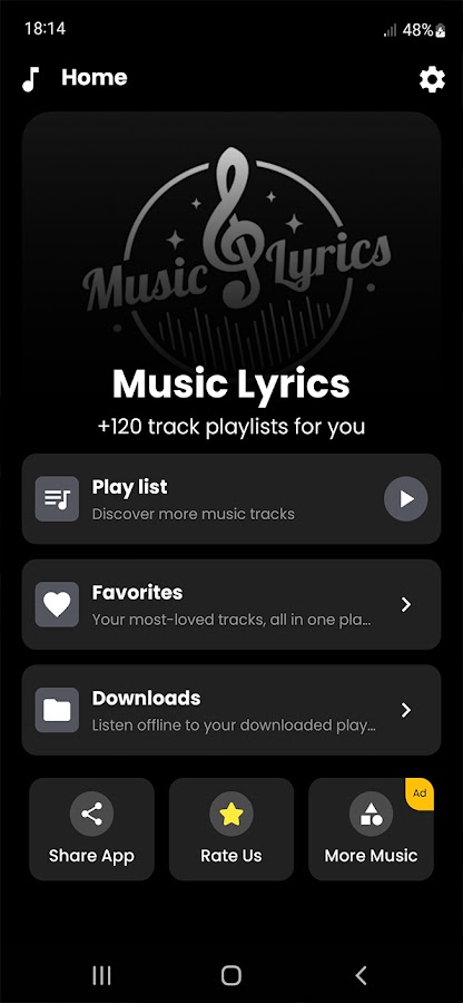Одной из особенностей приложения является то, что его дизайн элегантен и удобен в использовании.Оно также позволяет автоматически перемещаться между песнями с функцией случайного переключения между песнями, а также обеспечивает текст каждой песни песнями высокого качества при прослушивания, чтобы вы могли слушать песни в фоновом режиме, использовать другие приложения и с легкостью делиться песнями с друзьями.