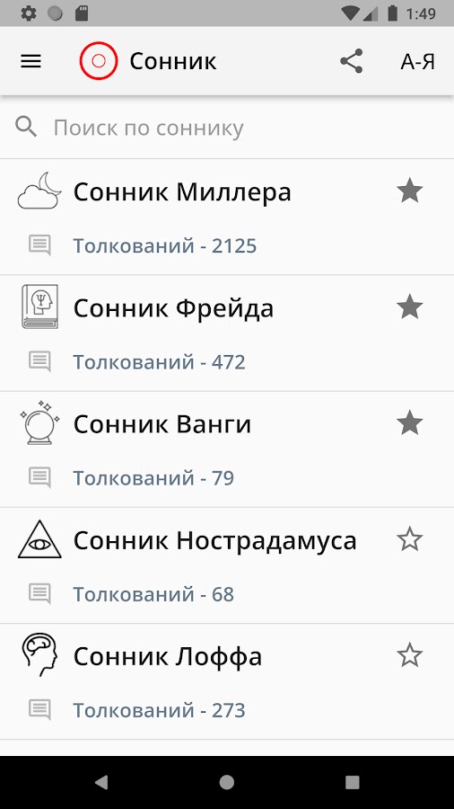 Приложение составлено на основе онлайн сонника сайта SunHome.ru: большой бесплатный сонник — толкователь снов на русском языке.