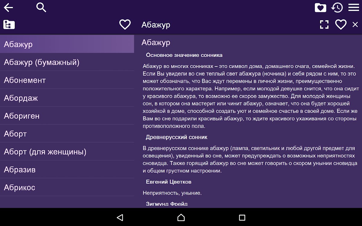 Это Справочник — Сонник — Толкование снов. Справочник работает в режиме ОФФЛАЙН и не требует интернет-соединения для работы.