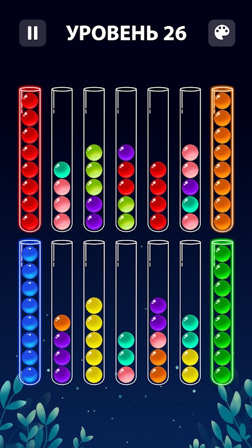 * Ваша цель — аккуратно переложить шарики одного цвета в отдельную стеклянную трубку и покорить каждый уровень, овладев мастерством сортировки.