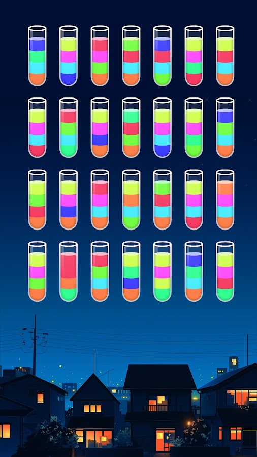 Это весёлая и захватывающая игра-головоломка. Когда все трубки заполнены водой и сортируются по тому же цвету, вы выиграете. 🧠