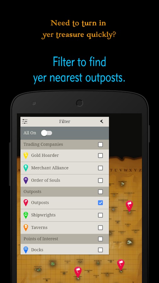 Неудивительно, что на Море Воров так много интересного, что карта заполнена маркерами! Так что, как и пиратские флаги, каждая категория маркеров имеет свои цвета и символы. Таким образом, вы можете быстро и легко найти то, что нужно вашему путешествию.