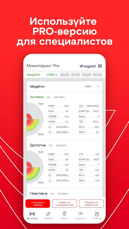 👍 наличие профессионального режима Pro, в котором доступна расширенная информация по ближайшим базовым станциям
