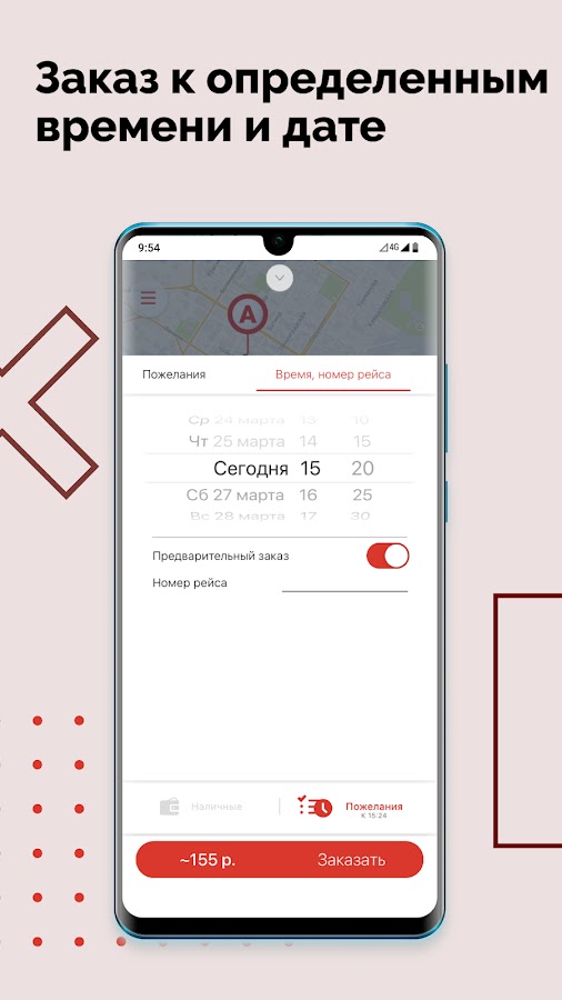 Закажи такси к конкретному времени и дате, и мы подадим машину тогда, когда это будет тебе необходимо.