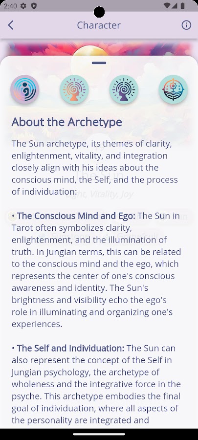 Приложение Soul Matrix сочетает в себе путь самопознания с основополагающими архетипическими концепциями К. Г. Юнга, швейцарского психиатра и психоаналитика. Используя архетипические концепции, приложение Soul Matrix предлагает уникальный инструмент для изучения глубин человеческой психики, способствует более глубокому пониманию себя и облегчает путь к целостности и самореализации.