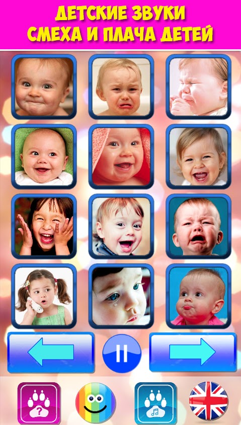 Детские звуки — это веселые звуки для ребенка и родителей. Проведите весело и забавно время с ребенком! Детские звуки малышей и плач понравятся Вашему ребенку, а Вы весело проведете время.