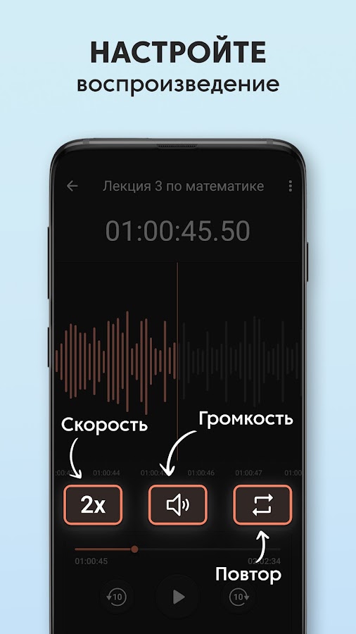 Получайте самые высокие оценки с записями лекций и семинаров в кармане. Даже если выступающий далеко и мешает фоновый шум, настройки микрофона в приложении обеспечивают высокое качество звука.