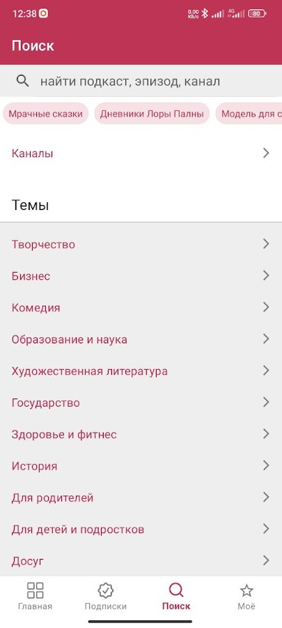 Найди подкаст, аудиокнигу или аудиоспектакль по ключевым словам, авторам или каналам, а также открой для себя новые подкасты по разным темам.