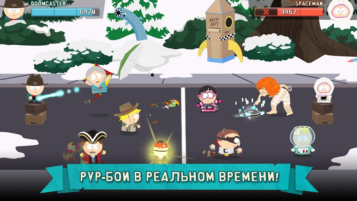 Встречайте стратегию в режиме реального времени с динамичными битвами от South Park Digital Studios! Ничего подобного вы еще не видели! Картман, Кенни, Стэн и Кайл в настоящем мобильном беспределе!