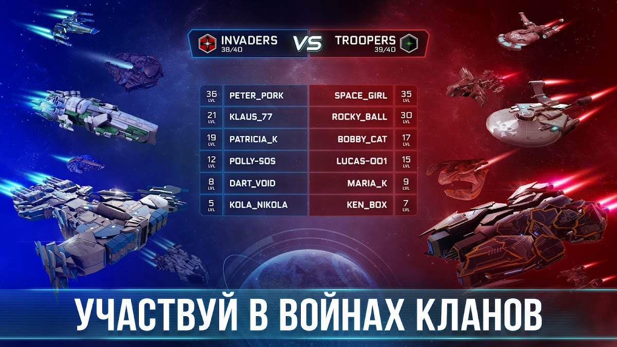 Конструктор знает цену знаниям — делись опытом, обменивайся ресурсами и участвуй в клановых войнах. Стратегия сильнее в команде — объединяйся с друзьями и покоряй вместе с ними космос.