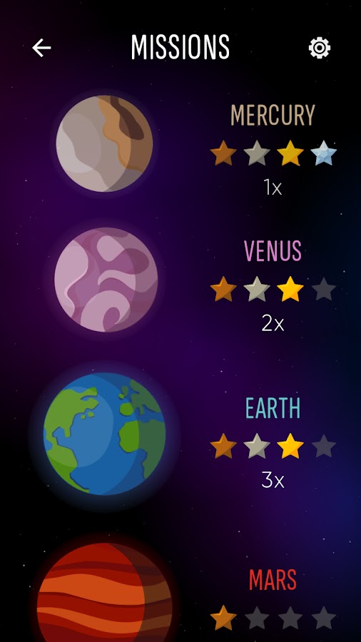 Давайте погрузимся в захватывающее космическое приключение в таблица умножения игры! Вы будете путешествовать по солнечной системе на космическом корабле, учить таблицу умножения, получать очки и открывать новые корабли и бонусы, которые помогут вам развивать умножение в уме и усный счет в целом. Какую планету посетить в первую очередь? Вам решать. Атмосфера глубокого космоса, красивая графика и таблица умножения игры будут сопровождать вас при каждом полете.