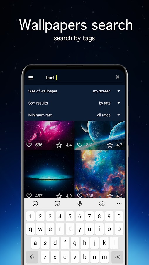 Галактики и звёзды — выбирайте по тегам и цветам.