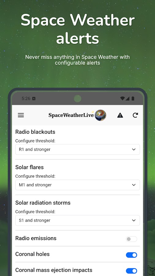 Положения и условия: https://www.spaceweatherlive.com/en/app/terms-and-conditions