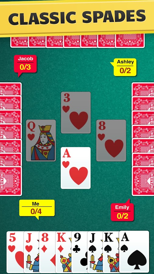 Погрузитесь в классический мир Spades, непревзойденный опыт карточной игры, теперь доступный для вашего мобильного устройства бесплатно. Независимо от того, являетесь ли вы профессионалом Spades или новичком, эта карточная игра Spades обеспечит вам часы развлечений. Это классическая карточная игра, любимая миллионами людей по всему миру.