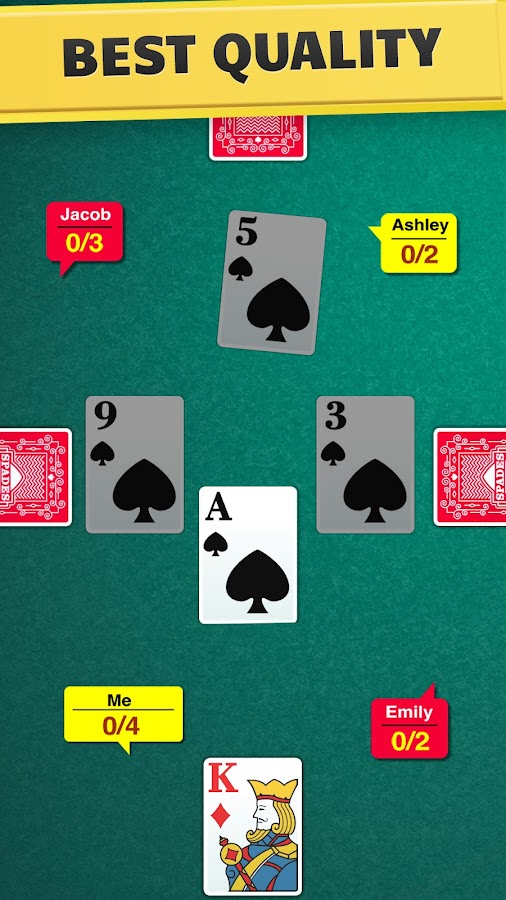 ♠ Аутентичный игровой процесс Spades без джокеров, чтобы обеспечить истинный опыт этой классической карточной игры.