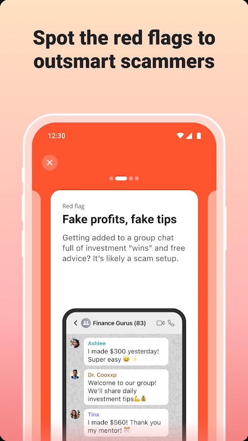 🔍 Scam Check: Мгновенно анализируйте подозрительные номера телефонов, веб-сайты, электронные письма, текстовые сообщения или изображения. Просто спросите наш искусственный интеллект, является ли что-то мошенничеством.
