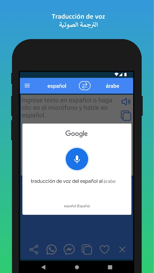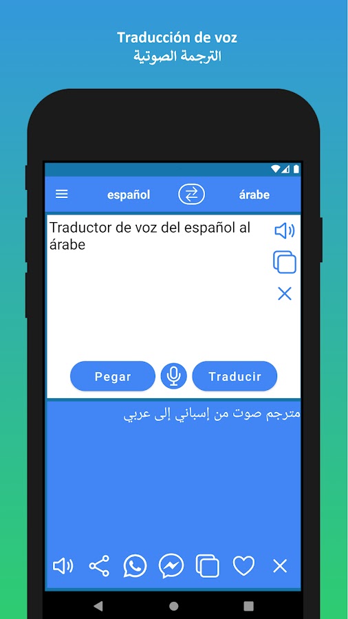 ✓ Используя встроенную технологию распознавания голоса, вы можете вводить текст голосом, а затем переводить его. Эта удобная функция позволяет переводить обычные разговоры. Вы можете перевести свой голос с испанского на арабский и свой голос с арабского на испанский.