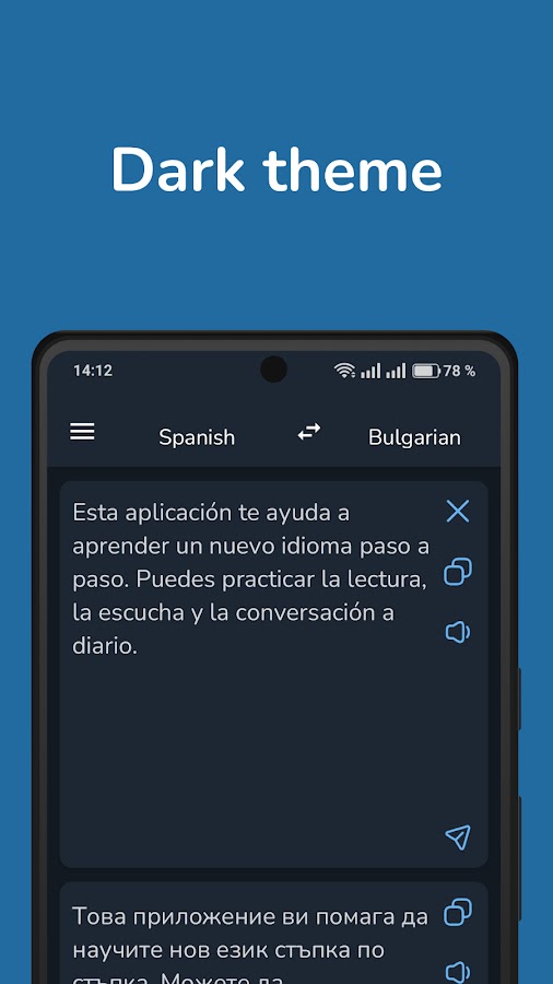 Независимо от того, изучаете ли вы болгарский или испанский язык, путешествуете за границу или работаете на международном уровне, это приложение-переводчик станет вашим основным языковым инструментом.