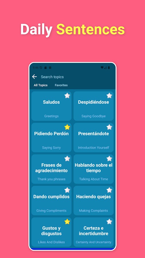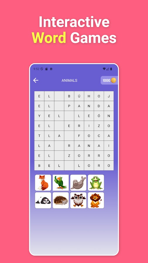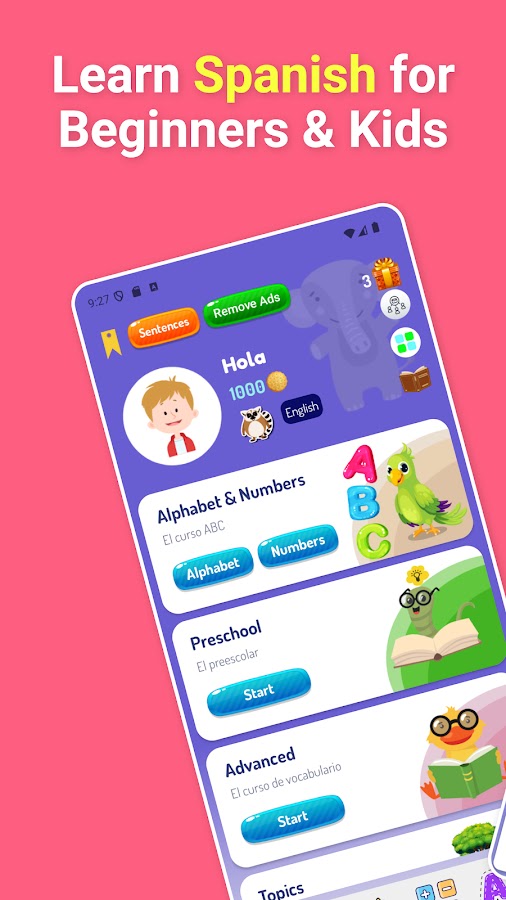 Благодаря широкому спектру учебных категорий, таких как названия частей тела, названия животных, общая лексика, словарь с картинками и многое другое, это приложение для изучения испанского языка поможет вам без труда освоить новый язык. Приложение имеет множество функций, которые помогут вашим детям значительно улучшить свой испанский словарный запас, произношение, навыки аудирования и письма.