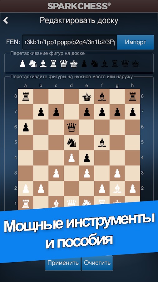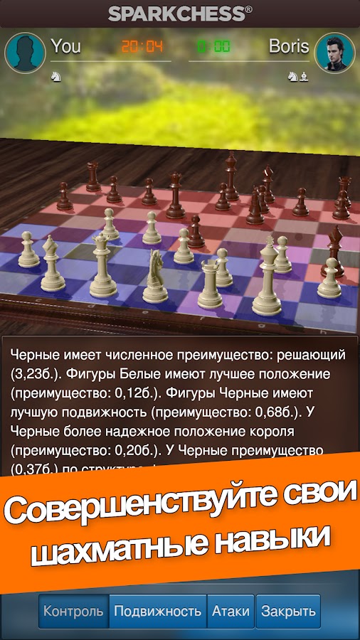 Слишком много шахматных приложений не под силу никому, кроме экспертов и мастеров. Настоящий тест действительно интеллектуальной шахматной игры заключается не в том, насколько сложно в нее играть, а в том, насколько хорошо она может адаптироваться к игрокам любого уровня подготовки. Именно это и отличает отмеченную наградами SparkChess.