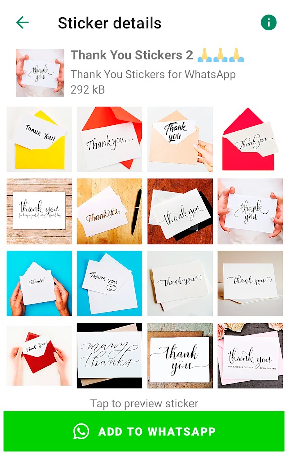Приложение имеет лучшую коллекцию Спасибо стикеров для WhatsApp WAstickerApps, и вы можете легко добавить эти стикеры в WhatsApp одним нажатием кнопки.