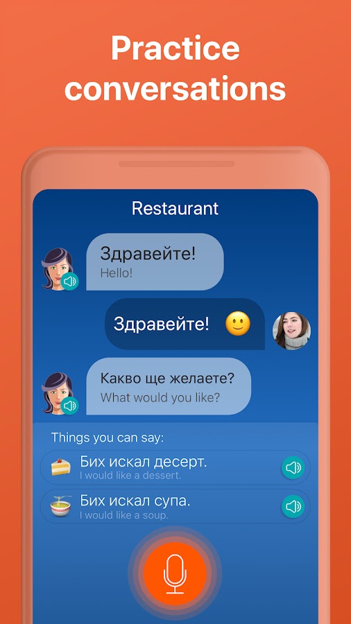 Новейшая система распознавания речи. Mondly умеет слушать то, как вы произносите болгарские слова и фразы. Вы получите только положительные отзывы, если будете говорить по-болгарски чётко и правильно. Это приведёт к улучшению вашего произношения.