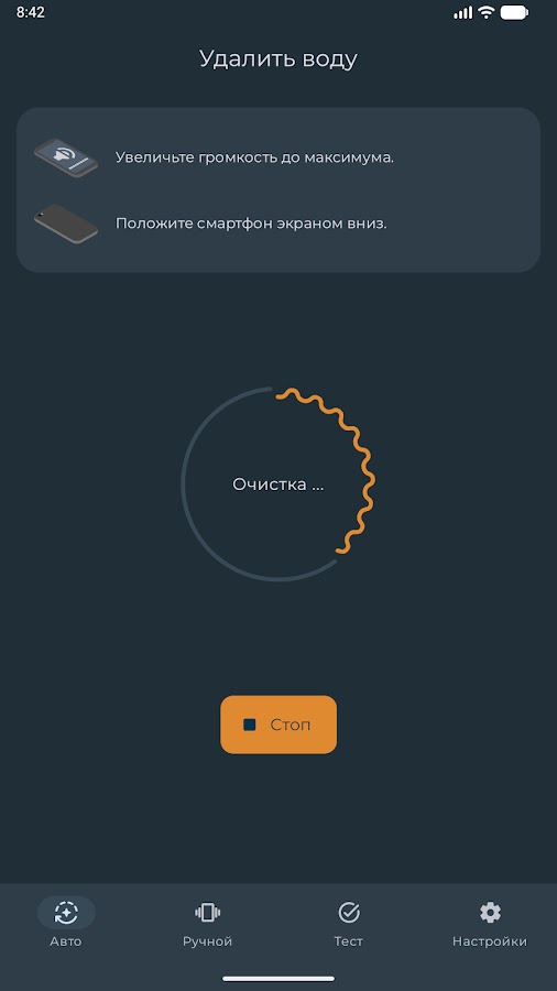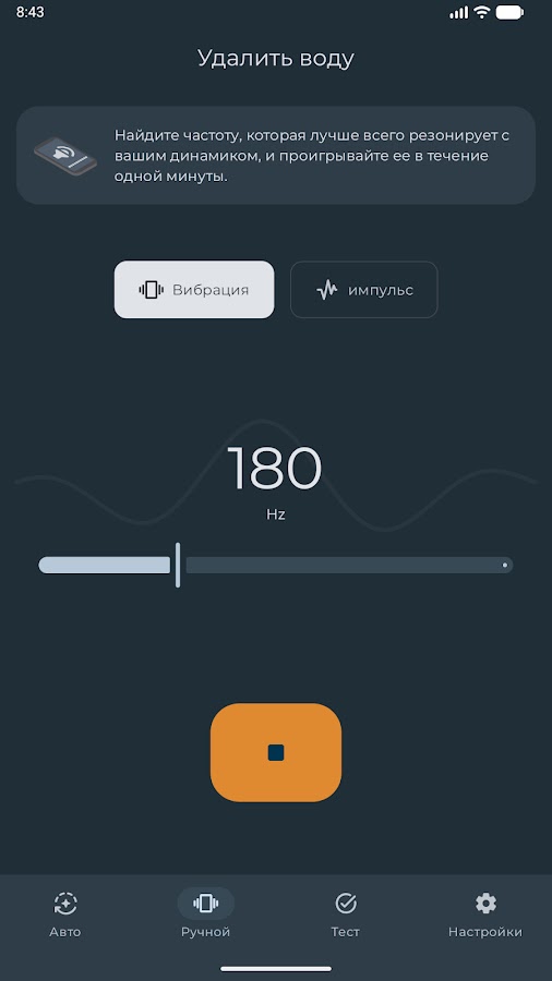 Запустите автоматическую последовательность сканирования частот, специально разработанную для резонанса с динамиками телефона и извлечения воды. Просто нажмите кнопку, увеличьте громкость и позвольте приложению сделать всё самостоятельно.
