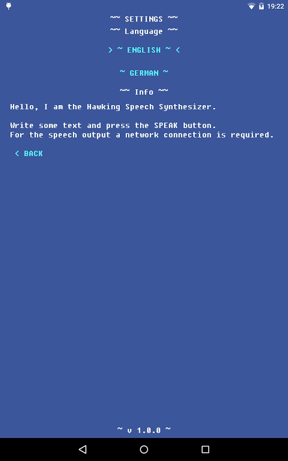 Скачайте приложение Speech Synthesizer — Hawking для Android бесплатно - последняя версия (1.0.2) уже доступна для установки на ваш телефон или планшет.