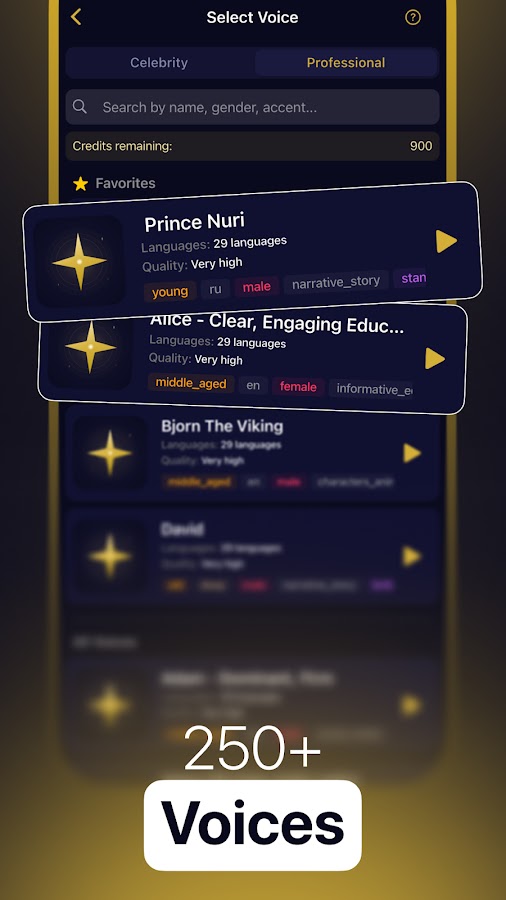 Превратите свой голос в любой из более чем 250 голосов знаменитостей и профессионалов одним касанием. Создаете ли вы контент, разыгрываете друзей или делаете озвучку, Stellai обеспечивает преобразование голоса студийного качества с помощью искусственного интеллекта.