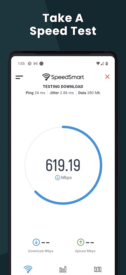 SpeedSmart это бесплатный счетчик скорости интернета он может проверить скорость для Wi-Fi, 2G, 3G, 4G, 5G, Кабель, Волокно и многое другое, это также анализатор Wi-Fi, который поможет вам проверить Wi-Fi соединение, чтобы обеспечить лучшую производительность.