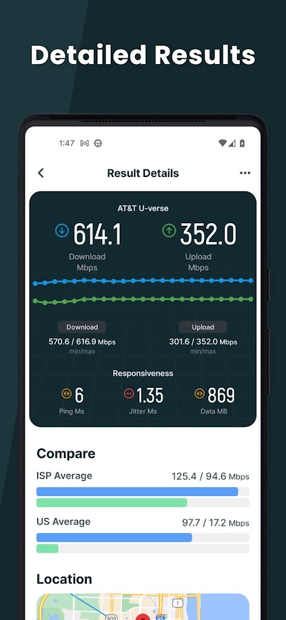 С помощью всего лишь одного крана, он будет тестировать подключение к Интернету через сотни высокую производительность серверов по всему миру и показать точные результаты в течение 30 секунд.
