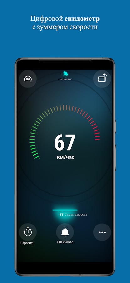 Данный мобильный спидометр также обладает функцией сигнализации, которая оповещает вас о превышении скорости. Просто установите верхний допустимый предел скорости, и ваш телефон будет предупреждать вас заранее.