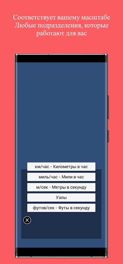 Поддержка различных масштабов скорости, включая километры в час (км/ч), метры в секунду, мили в час (м/ч), а также измерение скорости в узлах.