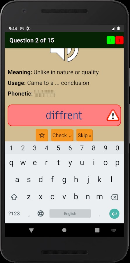 Приложение Spelling Master предлагает интерактивные упражнения по изучению языка, веселые игры-викторины и предоставляет полезный опыт. Изучите разнообразные слова, повысьте точность правописания и откройте для себя новый словарный запас, просто используя Spelling Master English Words несколько раз в день.