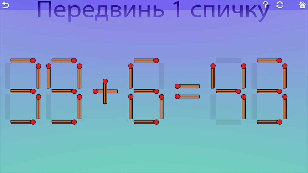 1. Перетащить одну спичку, чтобы математическое уравнение стало верным.