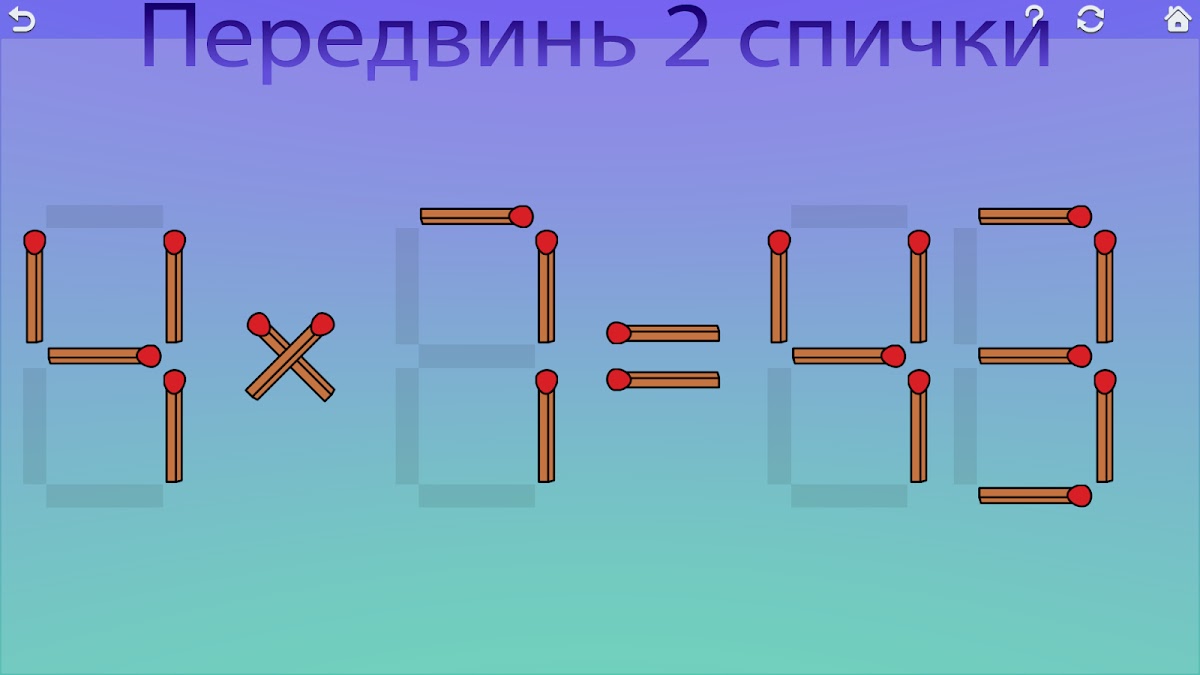 Более опытным пользователям – будет интереснее режимы игры с перемещением двух спичек.