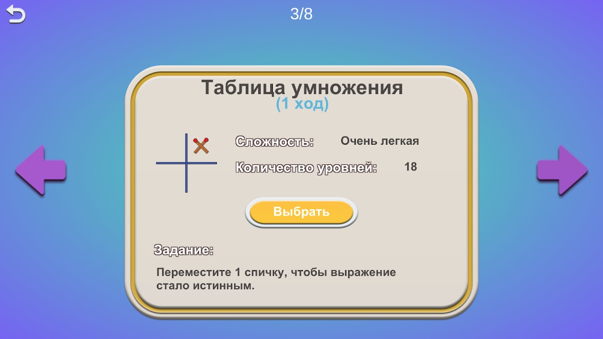 Спички – логическая головоломка с решением математических выражений при помощи передвижения палочек. Игра разбита на категории разной сложности. Игра развивает логическое мышление и улучшает математические навыки.