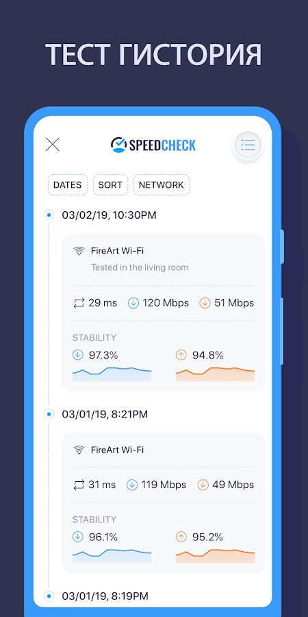 Скачайте бесплатное приложение SPEEDCHECK — Speed Test — самый простой, надежный и удобный способ провести проверку скорости Интернет-подключения и отслеживать качество и стабильность всех ваших подключений.