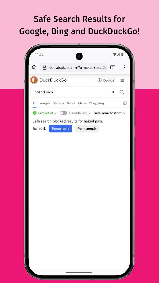 ✔ Принудительный безопасный поиск: Принудительно применяет строгий безопасный поиск в Google, Bing, DuckDuckGo и Ecosia.