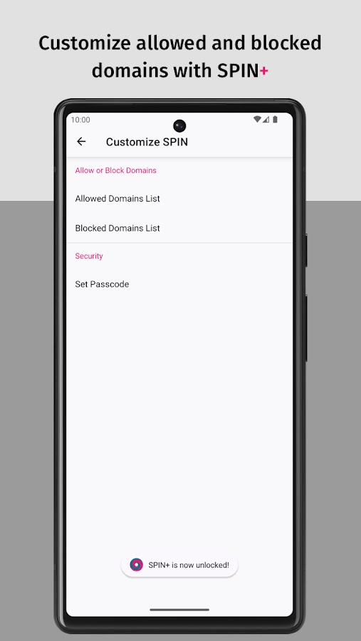 Создан на основе современных браузерных технологий, SPIN обеспечивает легкий и отзывчивый интерфейс. Он оптимизирован для телефонов и планшетов Android, обеспечивая высокую скорость загрузки страниц при сохранении строгой безопасности контента.