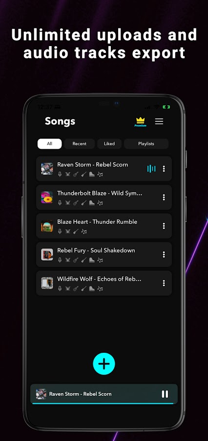 Неограниченное количество загрузок и экспорта аудиодорожек.