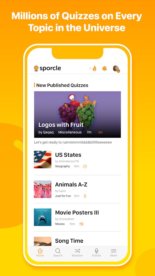 Sporcle — это дом для крупнейшей библиотеки викторин на планете, в которых сыграно более 5 миллиардов раз. Если вы увлекаетесь спортом, кино, географией, музыкой или чем-то совершенно другим, вы обязательно найдете викторину, которая соответствует вашим интересам.