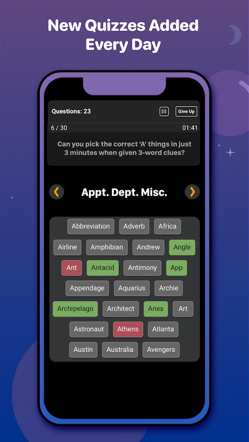 • Различные уровни сложности, от простых викторин до сложных вопросов, которые проверят ваши знания