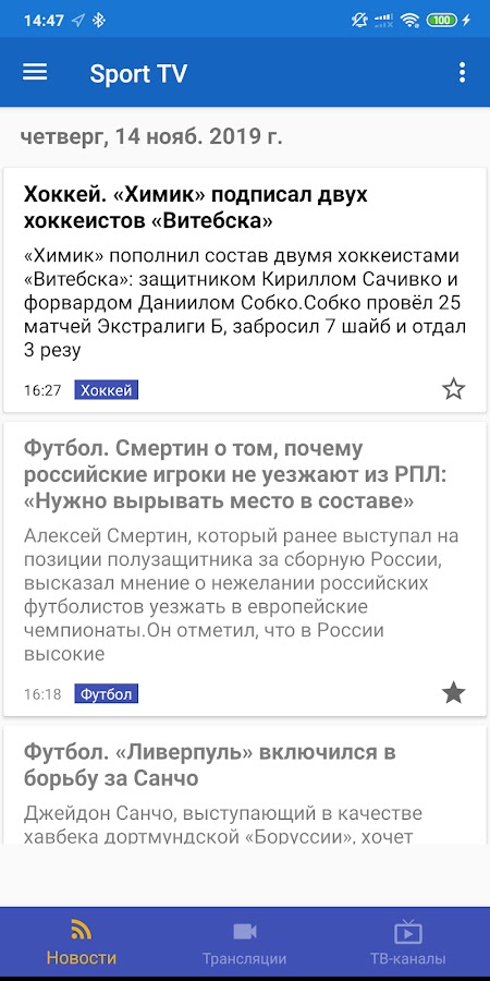 Спортивное приложение (Спорт ТВ) создано для показа онлайн-трансляций спортивных соревнований, как белорусского, так и международного спорта.