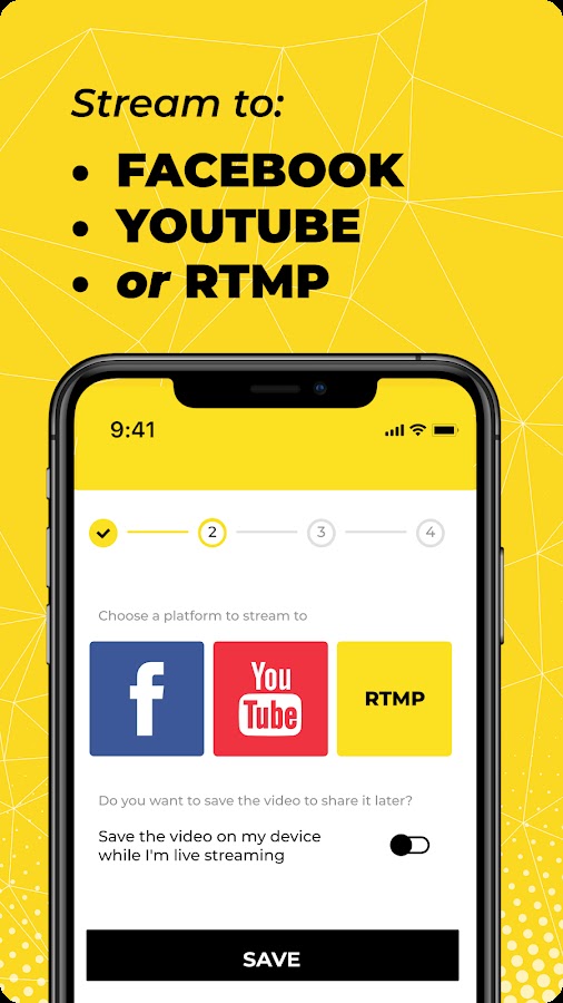 SportCam позволяет вам вести прямые спортивные трансляции со своего устройства прямо на Facebook, YouTube или через RTMP, также оно добавляет классное табло, которое обеспечивает похожесть вашей видеотрансляции на профессиональное вещание.